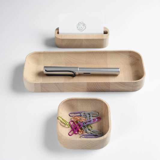 Dark Mahogany Stained Beechwood Desk Organizer Set