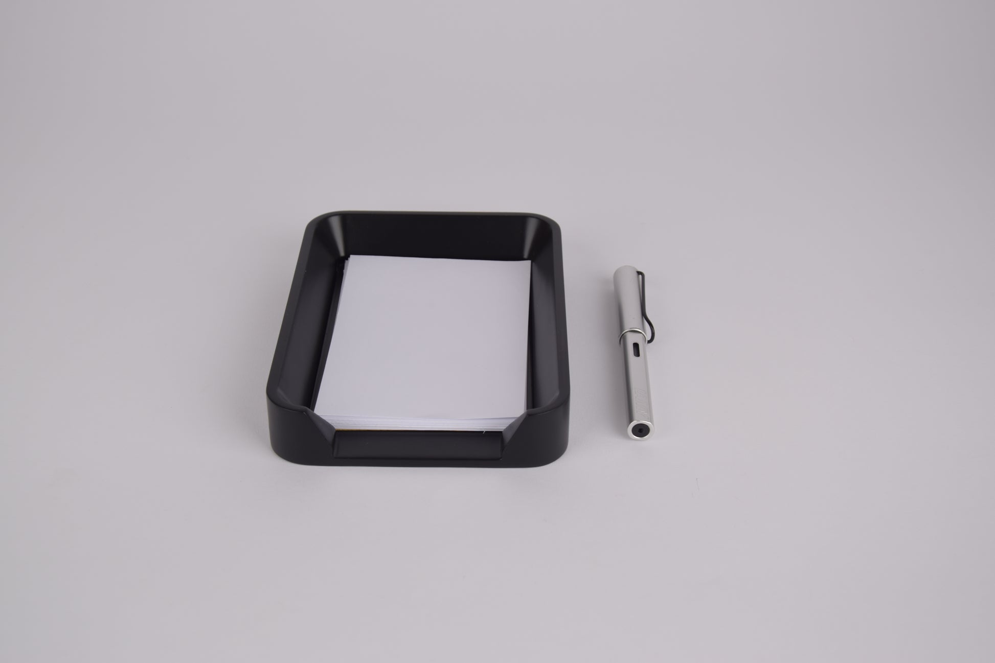Each note paper tray is crafted from durable engineered wood with a sleek matte finish. Internal size fits standard 4x6 note cards (4.7" x 6.29" x 1" / 12 x 16 x 2.5 cm), making it perfect for storing memos, reminders, and daily planning sheets. The front opening design allows for easy access — simply slide your papers in and out without lifting the tray. Silicone pads at the bottom keep it stable and non-slip on your desk.