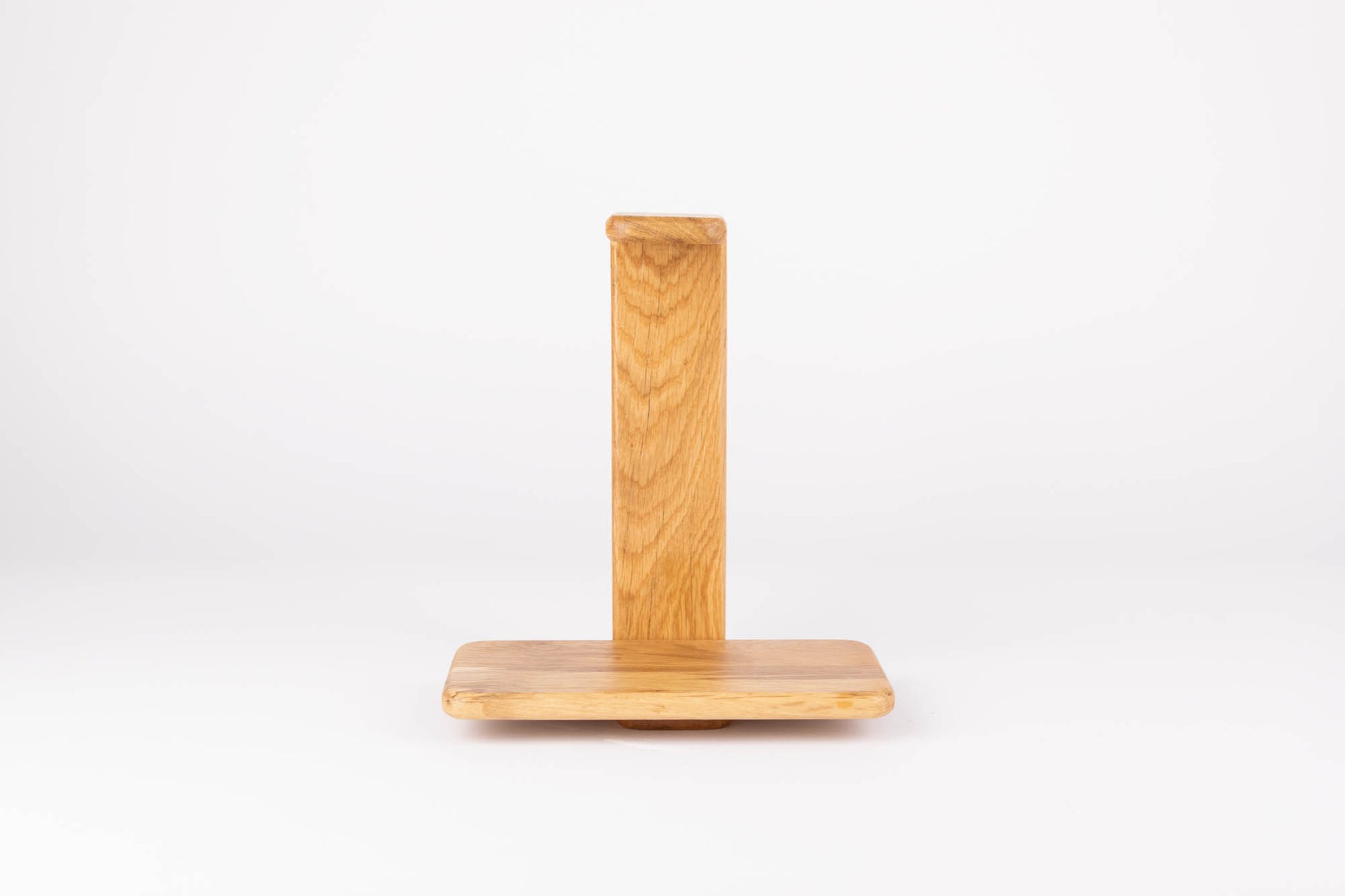 Iulia's new oak headphone stand is entirely handmade from sustainable solid oak panels. This wooden headphones holder is thick and strong. This hanger has a tray which is a great place for your phone.